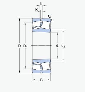 1) The spherical roller bearing is principally provided with two rows of symmetrical spherical rollers and a common sphered raceway in the out ring.